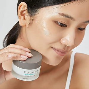 - After cleansing and toning, apply a small amount of the Pressed Serum Crystal Iceplant to your face.
