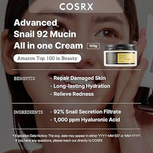 Experience the rejuvenating power of the COSRX Advanced Snail 92 All in One Cream, expertly formulated to deliver intense hydration and repair to your skin. This rich, lightweight cream harnesses the benefits of 92% snail mucin to promote a healthy, balanced complexion, leaving your skin feeling nourished, smooth, and resilient.