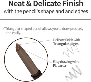 Define your brows with ease and precision with the ETUDE Drawing Eyebrow Pencil in #1 Dark Brown. This long-lasting, smudge-proof formula allows you to create natural, fuller-looking eyebrows effortlessly. Whether you're filling in sparse areas or shaping a bold arch, the soft, blendable texture ensures seamless application. The triangular-shaped tip offers control for detailed strokes, while the built-in spoolie brush helps to groom and blend for a polished finish.