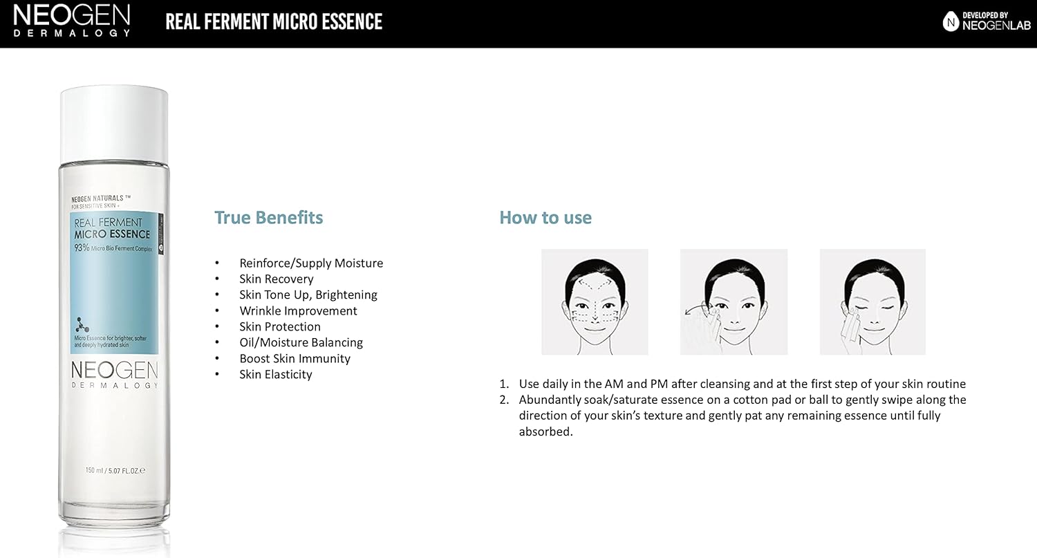 Experience the transformative effects of the Neogen Dermalogy Real Ferment Micro Essence Premium and enjoy a hydrated, radiant, and youthful complexion with every use.