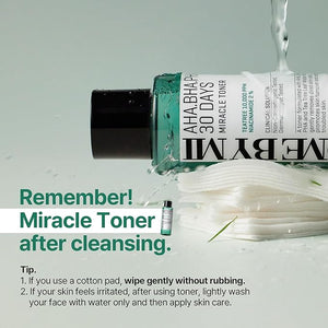 Reveal smoother, clearer skin with the SOME BY MI AHA-BHA-PHA 30 Days Miracle Toner, and experience the transformative power of gentle exfoliation and hydration.