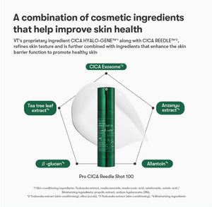 The VT Pro Circa Reedle Shot 100 is an all-in-one skincare solution designed to deeply nourish, hydrate, and rejuvenate your skin. This lightweight essence is enriched with powerful botanicals and innovative skincare technology, making it the ultimate choice for restoring radiance and maintaining a youthful glow.